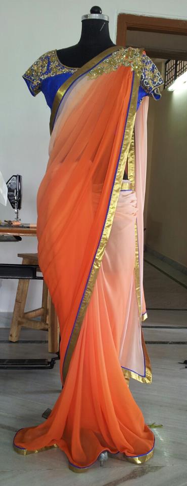 designer blouseDesigner sareesIndian FashionMadhu vermaOnline ShoppingUncategorized Latest saree from Madhu Verma’s collection By southindiafashion - Apr 28, 2013 Orange and peach double shaded saree with gold border and brooch on the pallu paired up with designer blouse. For details and orders contact: email: monkbymadhu(at)gmail.com