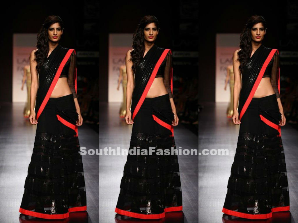 Celebrity SareesIndian FashionManish MalhotraUncategorized Black Saree by Manish Malhotra By southindiafashion - Jun 7, 2013 Sequin black saree with red border designed by Manish Malhotra.