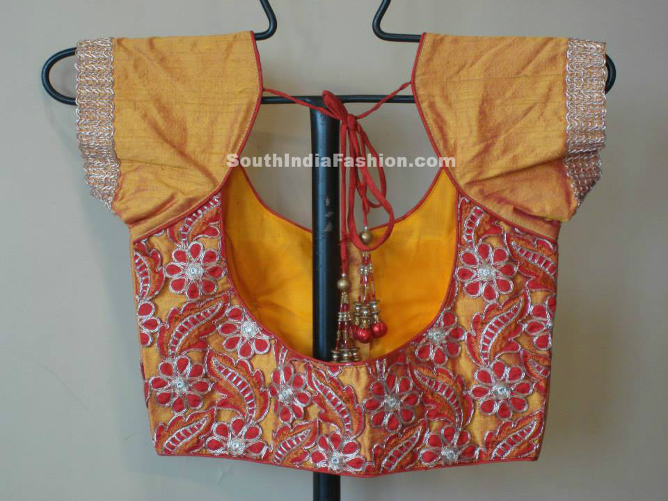 Indian FashionLatest Blouse DesignsOnline ShoppingUncategorized Cut Work Blouse Designs By southindiafashion - Jun 11, 2013 Silver and yellow cut work saree blouses designed by Rachna’s colors. For orders conatct: [email protected]