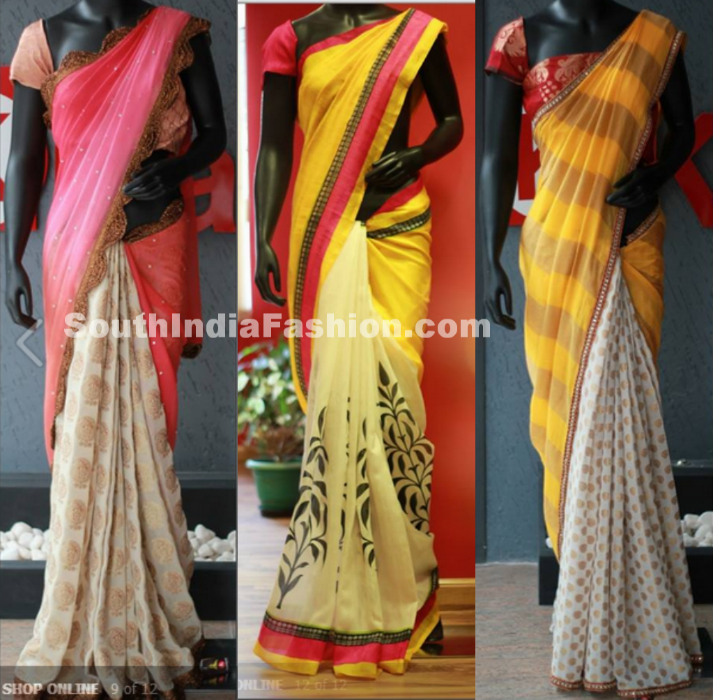 3. Shaded chanderi saree with georgette zari offwhite pleats and kundan borders.