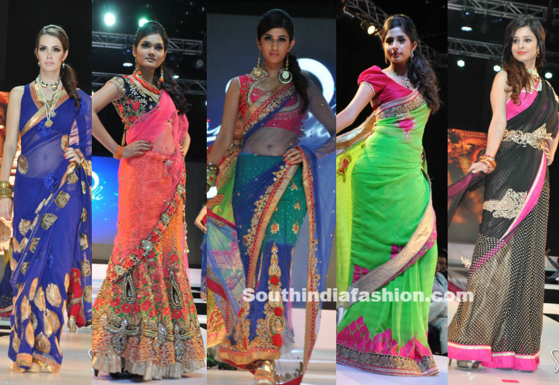 Celebrity SareesFashion ShowIndian FashionUncategorized Models in sarees By southindiafashion - Jun 30, 2013 Models walked the ramp in beautiful sarees at Fashion Thrills fashion Show event.