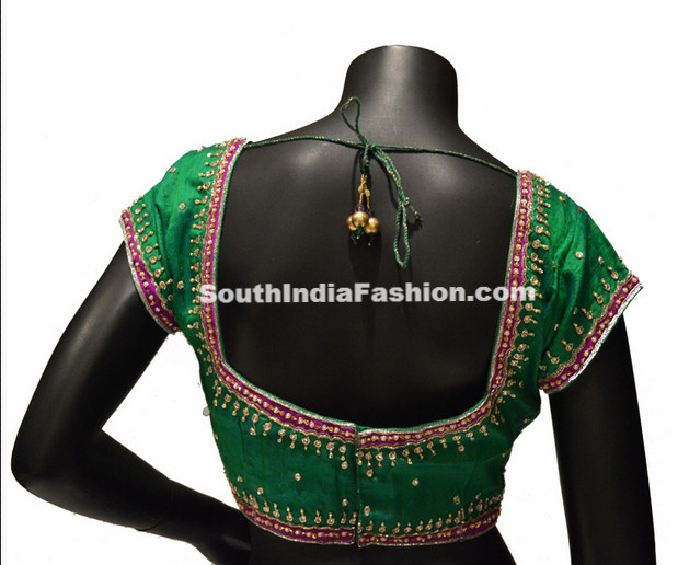 Indian FashionLatest Blouse DesignsUncategorized Bridal Saree Blouse Patterns By southindiafashion - Jul 19, 2013 Bridal saree blouse designs with stone work, kundan work and sequins and deep back neck pattern.
