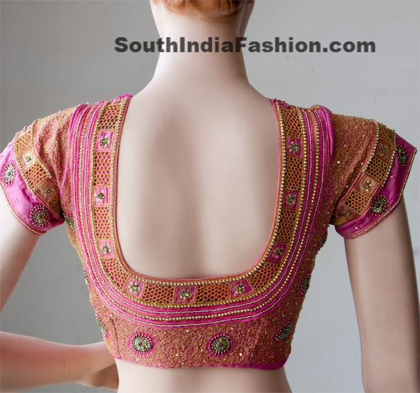 Indian FashionLatest Blouse DesignsUncategorized Cut Work Saree Blouse By southindiafashion - Jul 19, 2013 Cut work and maggam work saree blouse with deep back neck pattern