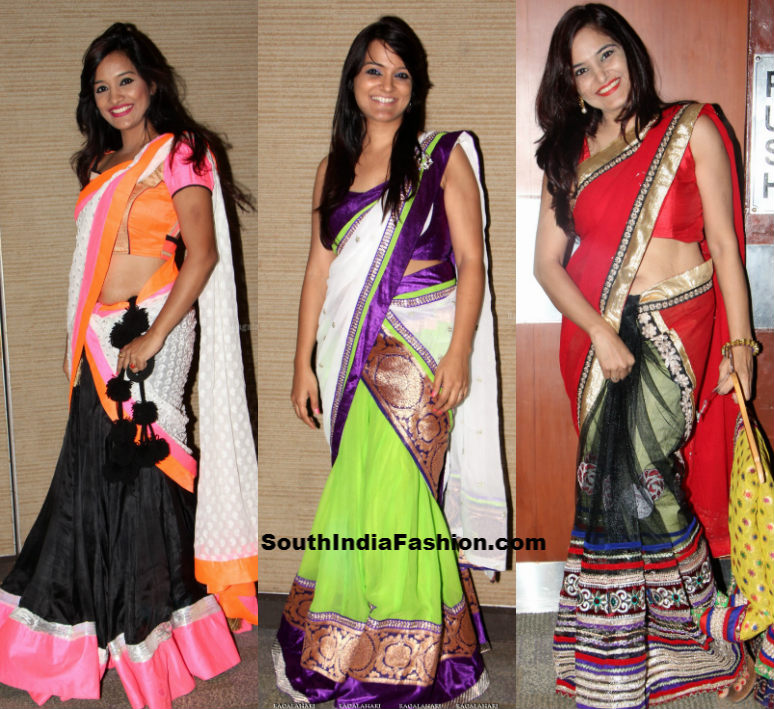 Celebrity SareesHyderabad ShoppingIndian FashionUncategorized Society Trendz Fair, Hyderabad By southindiafashion - Jul 6, 2013 Models showcasing half sarees and half n half saree at Soiety Trendz fair, Hyderabad.