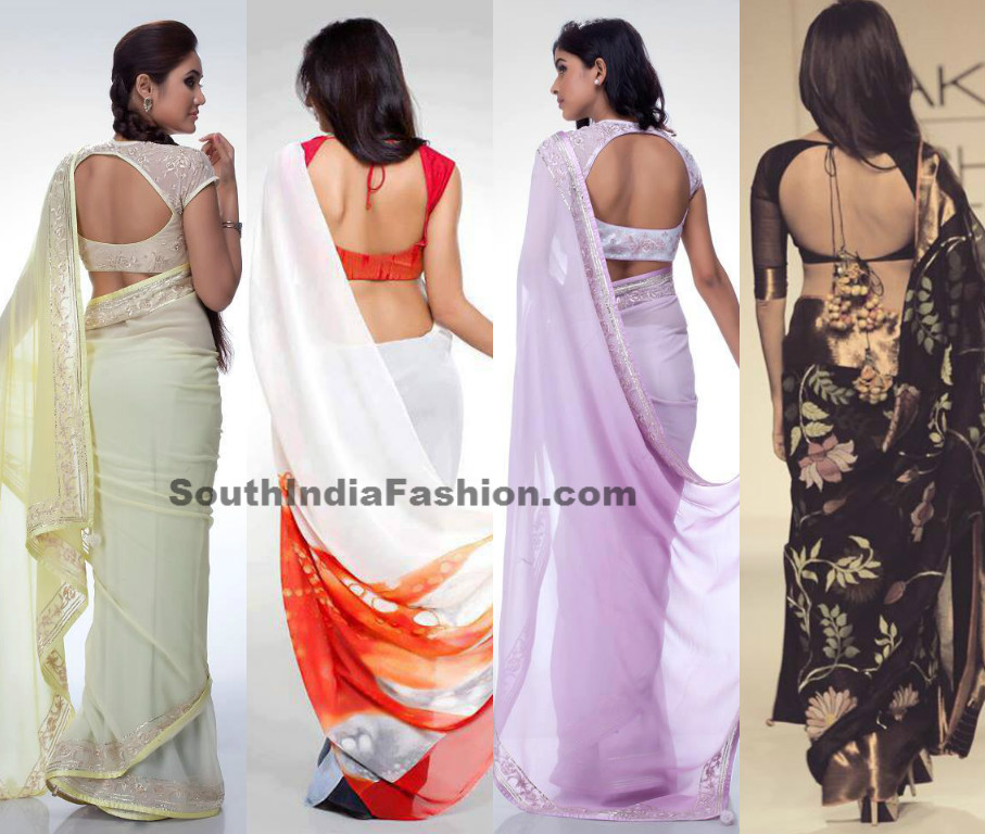 Celebrity SareesIndian FashionLatest Blouse DesignsUncategorized Simple Sarees and Stylish Blouses By southindiafashion - Aug 4, 2013 Simple and elegant sarees paired up with very fashionable blouses with stylish back neck designs.