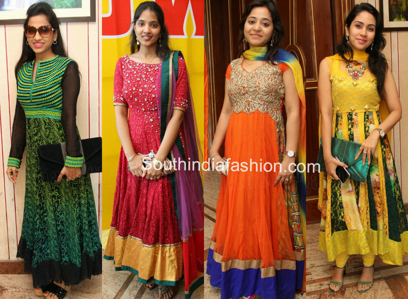AnarkaliIndian FashionSalwarsUncategorized Floor Length Anarkali’s By southindiafashion - Oct 8, 2013 Hyderabad socialites spotted in beautiful floor length anarkali’s at Dandia celebrations.