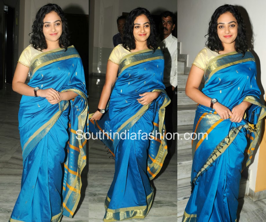 Celebrity SareesIndian FashionUncategorized Nitya Menon in Traditional Saree By southindiafashion - Nov 17, 2013 Actress Nitya Menon in blue traditional sraee.