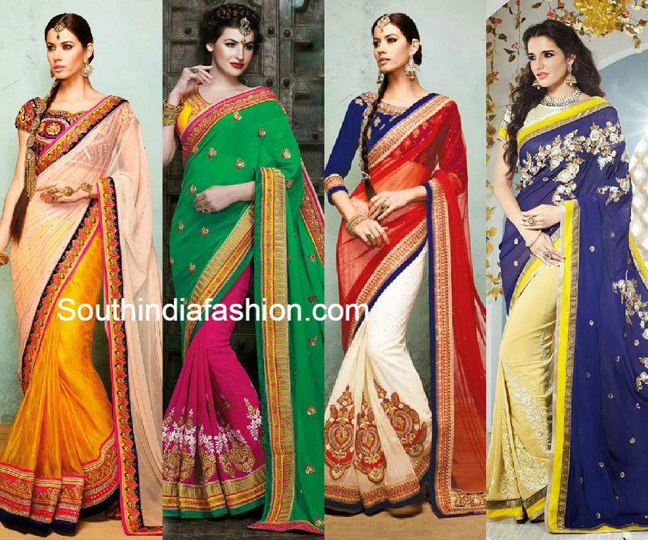 Half and Half SareesIndian FashionOnline ShoppingUncategorized Party Wear Half and Half Sarees By southindiafashion - May 8, 2015 Beautiful partywear half and half designer sarees. (BUY HERE)